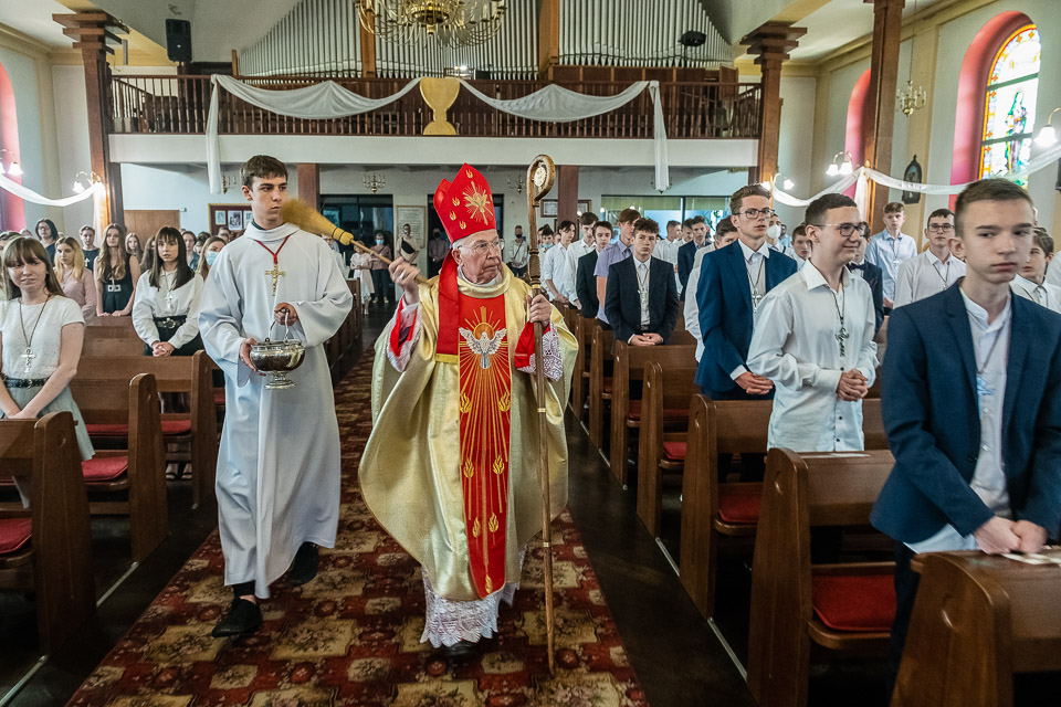 Po długim okresie przygotowań spowodowanym pandemią koronawirusa blisko sto młodych osób przystąpiło w naszym kościele parafialnym do sakramentu bierzmowania, którego szafarzem był ks. bp Paweł Socha. Bierzmowanym życzymy, by chętnie korzystali z darów Ducha Świętego, wtrwali w wierze i łasce bożej. Zapraszamy do galerii zdjęć z uroczystości, którą przygotował Adam Czernenko.